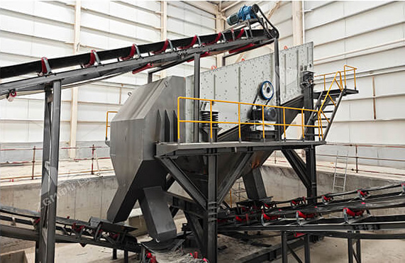 石英原料经振动给料机输送到MK-J106颚式框架破碎站进行粗碎,筛分后不合格物料进入二级破碎站进行破碎,二次破碎后的物料进入振动筛进行筛分,其中大于100mm的料则要再次进入二级破碎站进行破碎,最终产出小于100mm的成品骨料。